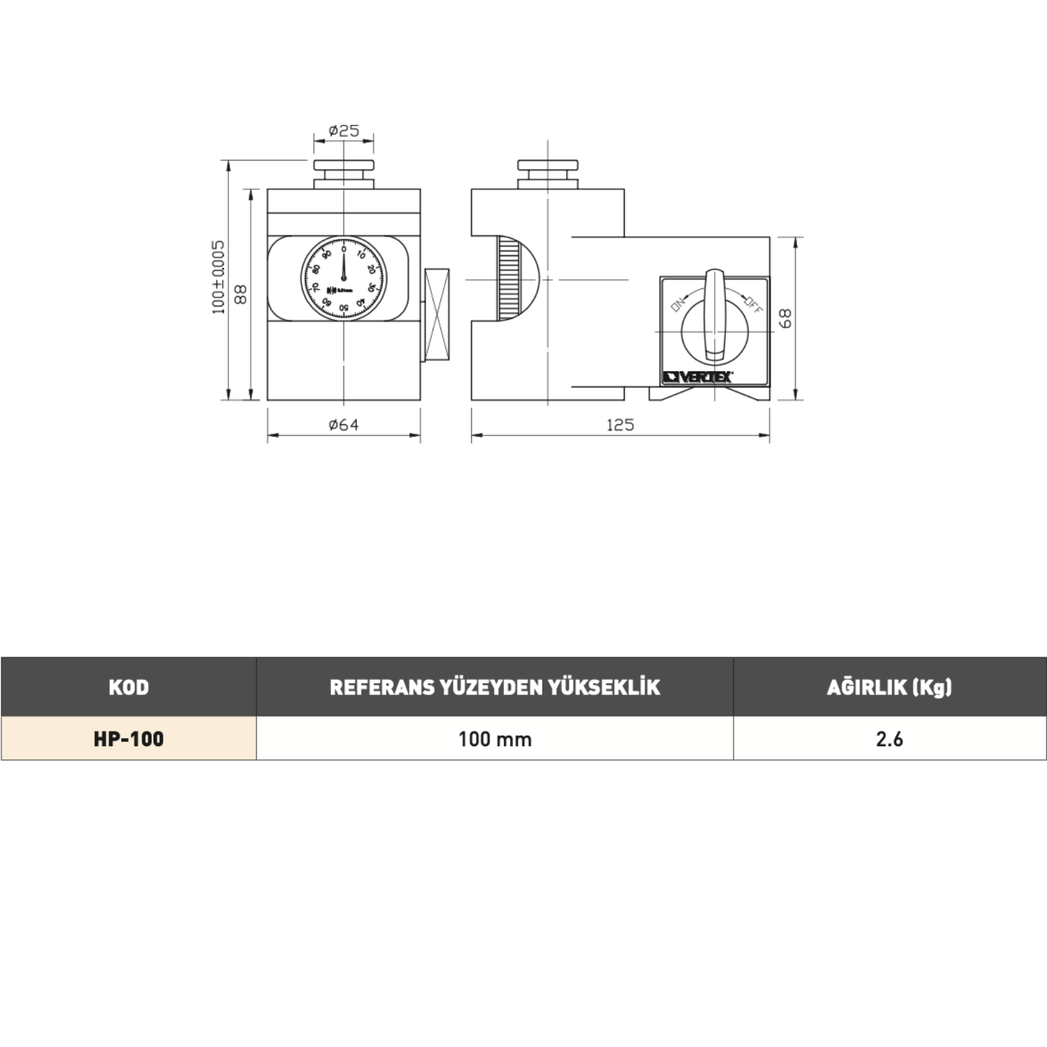 Vertex HP-100 Manyetik Tabanlı Yükseklik Hizalama (Saatli), yüksek hassasiyetli üretim ortamları için tasarlanmış, güvenilir ve dayanıklı bir ölçüm cihazıdır.