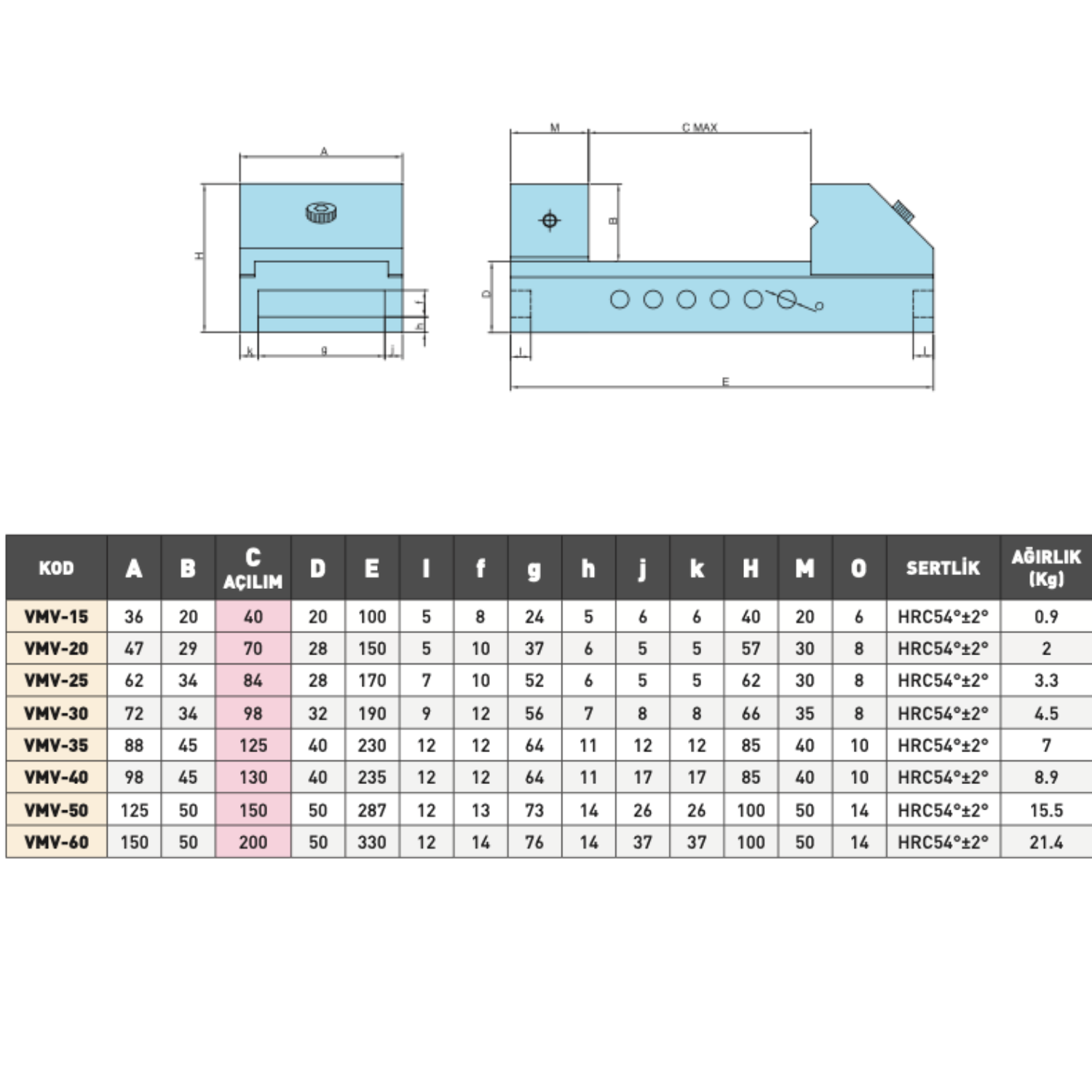 Vertex VMV Serisi Pimli Hassas Mengene, sağlam yapısı, taşlanmış yüzeyleri ve üstün sabitleme kapasitesiyle profesyonel işleme süreçlerinde kusursuz bir denge ve doğruluk sağlar.