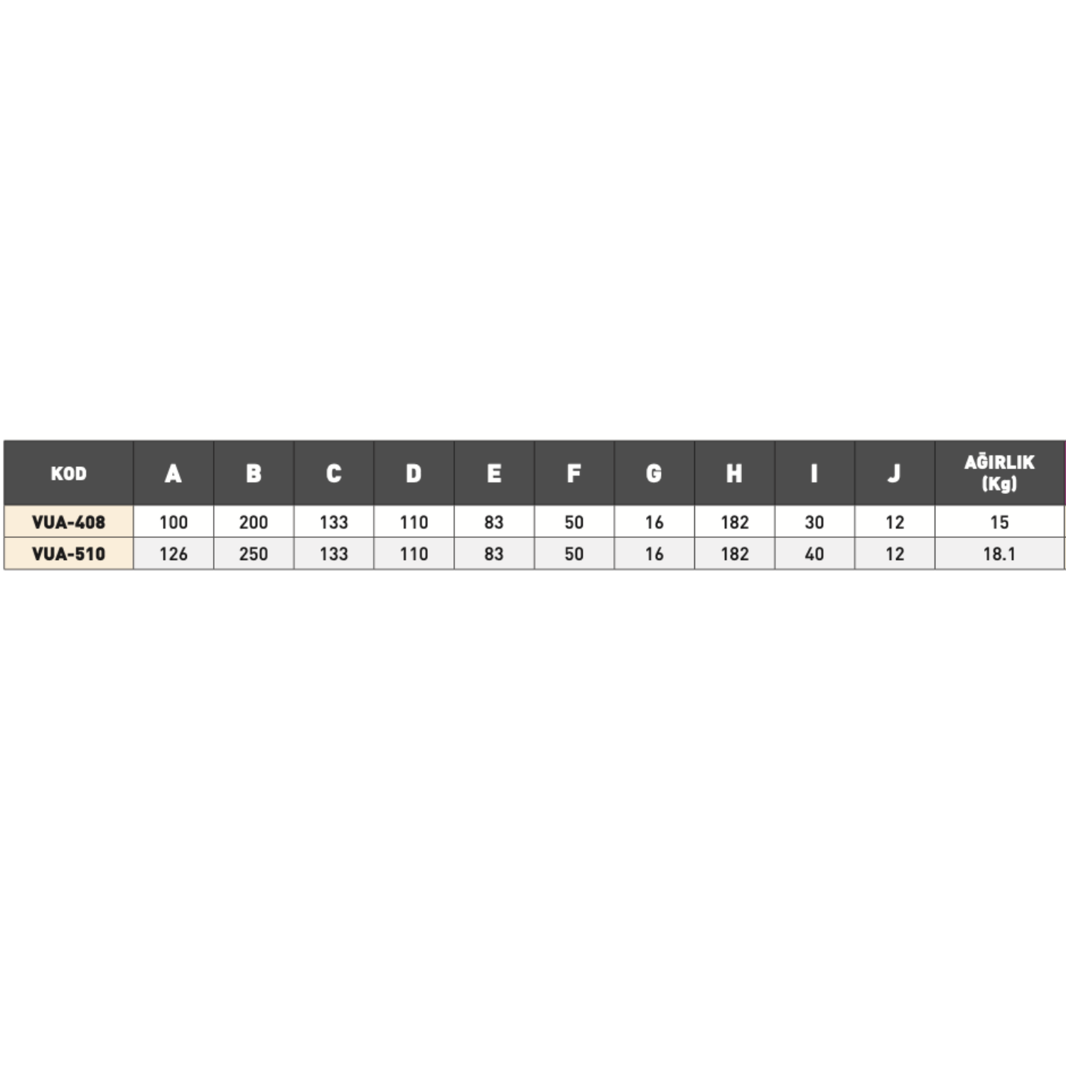 • VUA-510: Daha büyük parçalar için güçlü destek sağlar.
