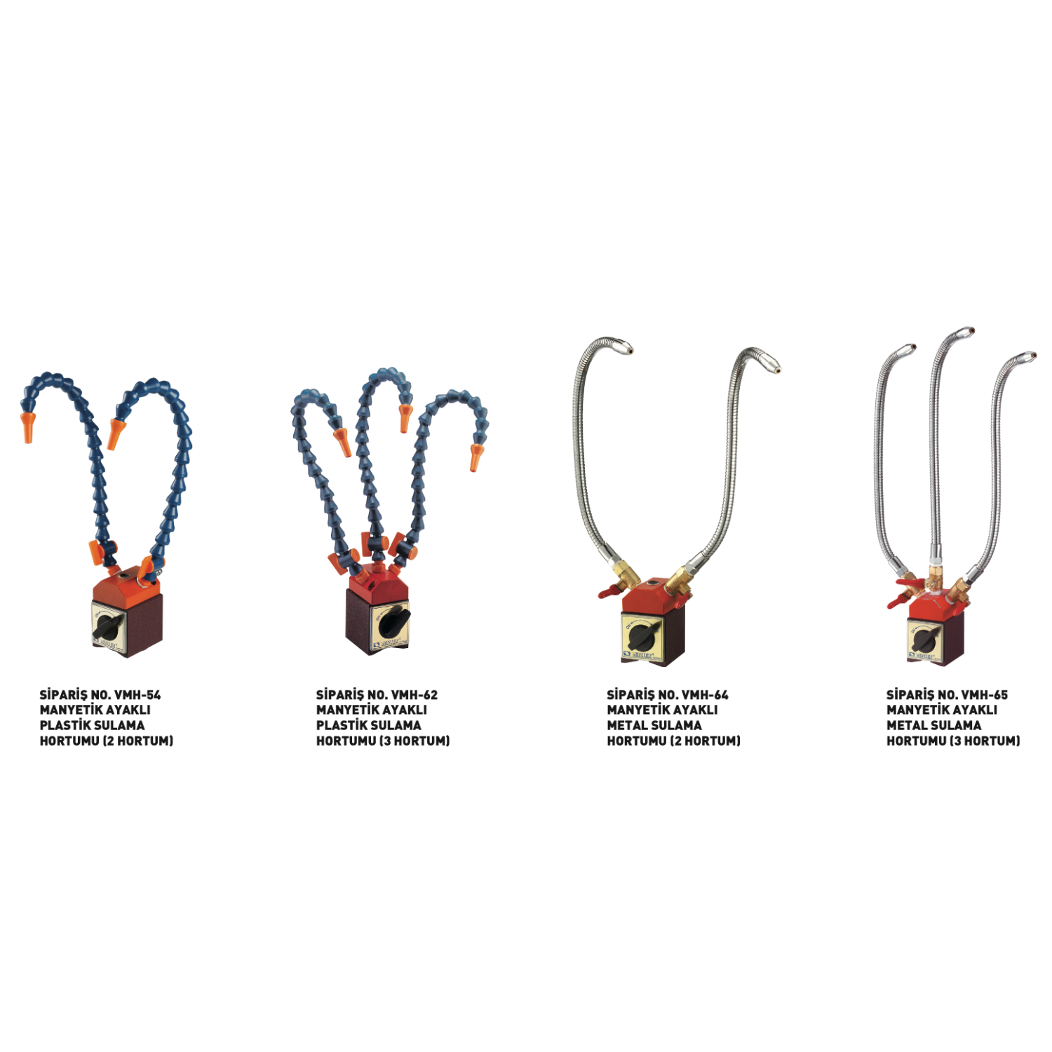• Soğutma Hortumlu Versiyonlar: VMH-62, VMH-63, VMH-64 ve VMH-65 modelleri; plastik veya metal hortum seçenekleriyle freze ve CNC tezgahlarında etkin soğutma sağlar.