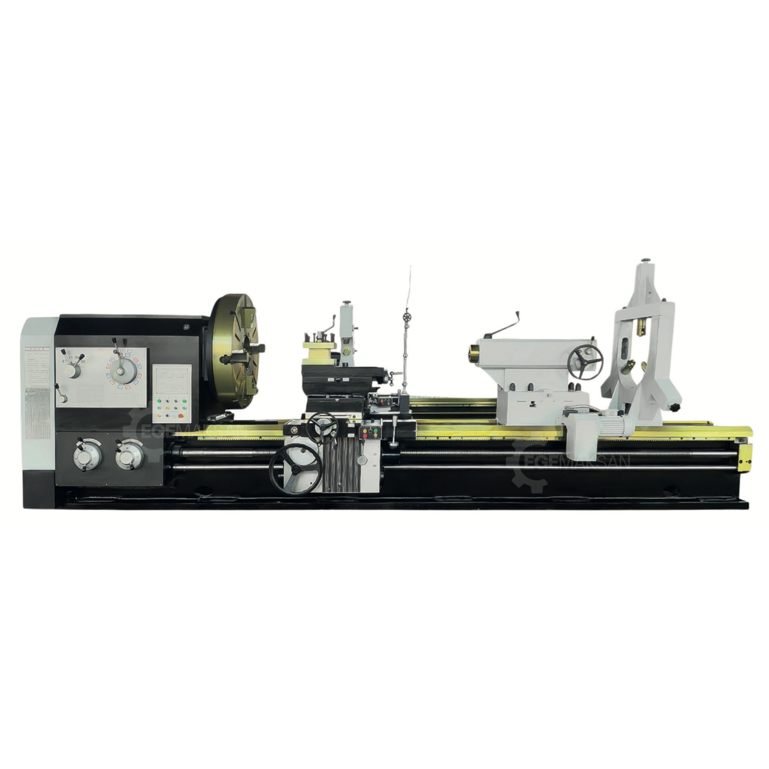 GDS dijital ölçme sistemi, 4 ayaklı kepenkli ayna, döner ve sabit punta, mors kovanı, gezer ve sabit yataklar, seri hareket sistemi, aydınlatma ve soğutma sistemleri standart olarak sunulmaktadır. Arka, alt ve ayna talaş muhafazaları ile iş güvenliği üst seviyeye çıkarılmıştır.